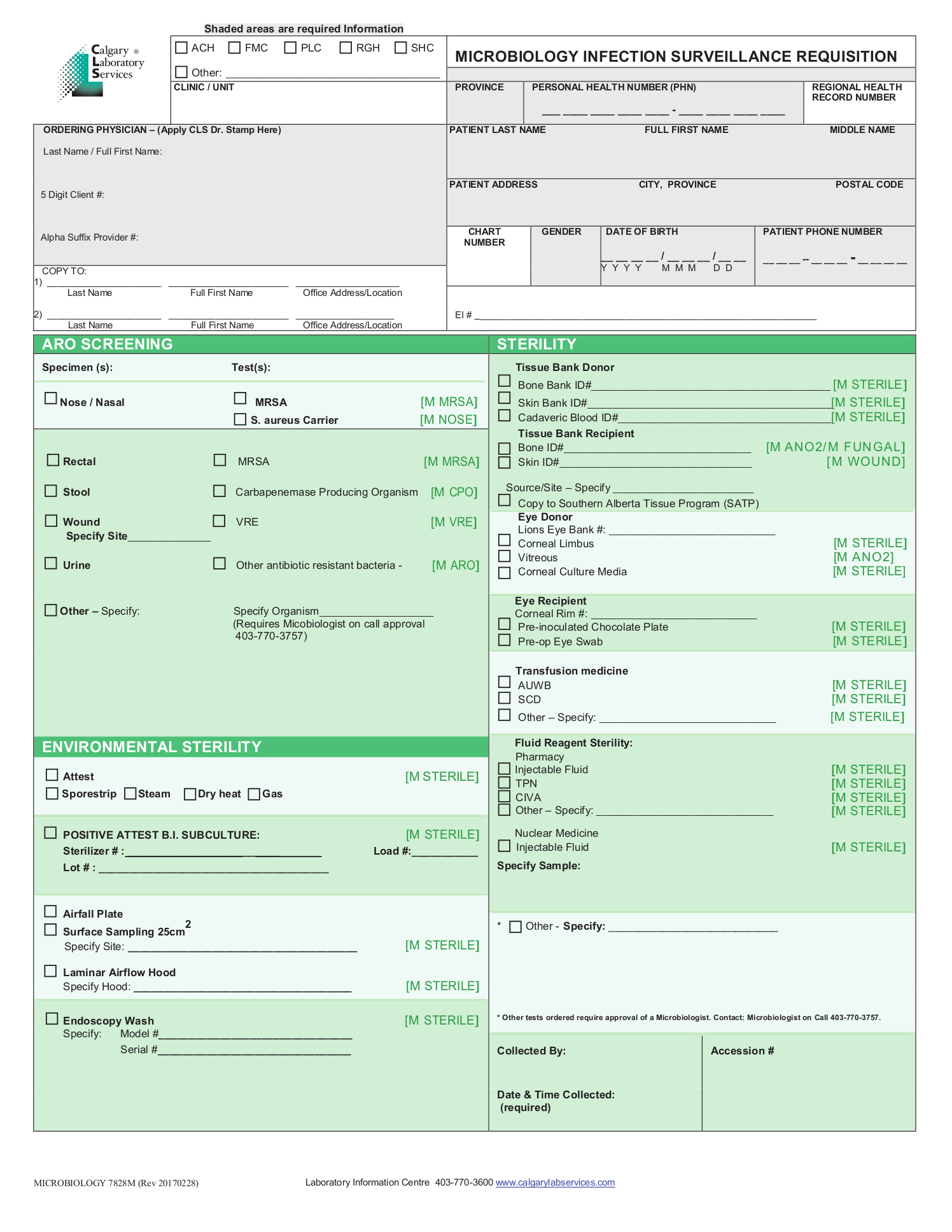 Calgary Laboratory Services Microbiology Infection Surveillance Requisition Print