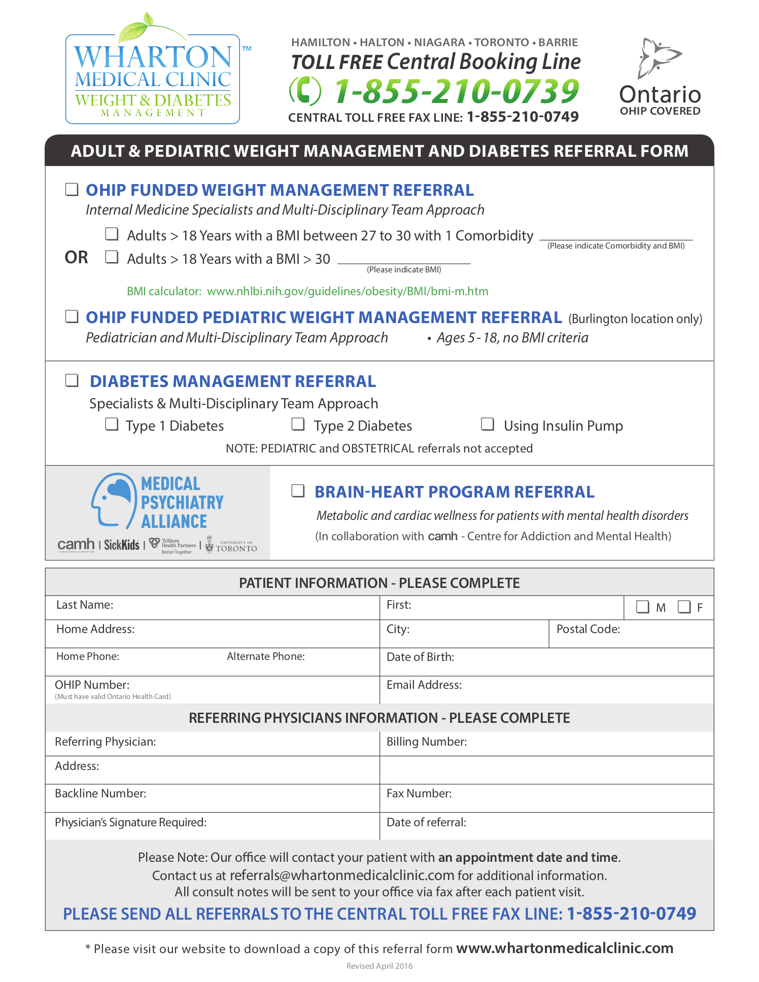Wharton Medical Clinic - Diabetes / Weight Management Referral Print