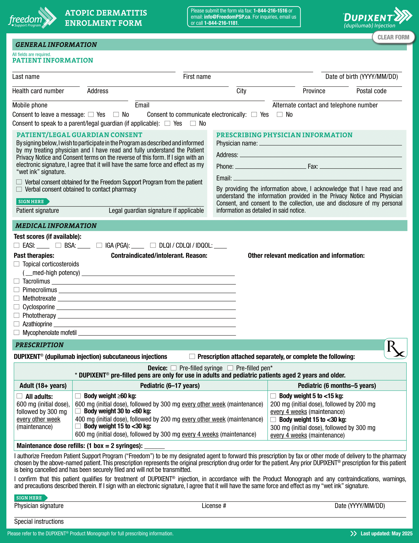 Dupixent (dupilumab) PSP Atopic Derm Enrolment Form CA EN 2025 Print