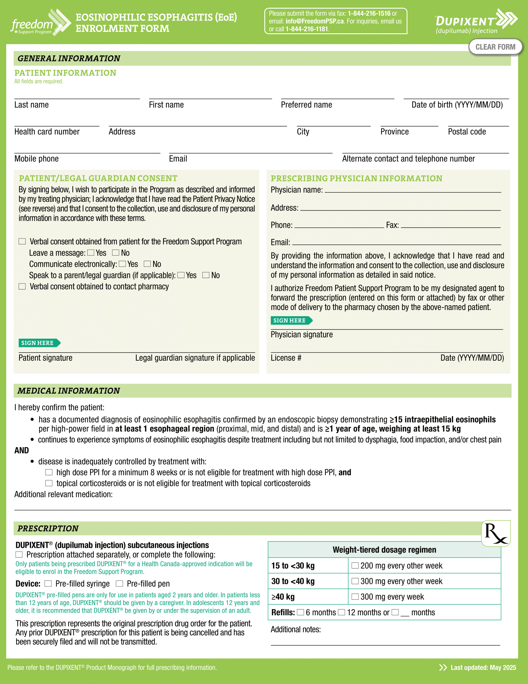 Dupixent (dupilumab) EoE PSP Enrolment Form EN 2025 Print