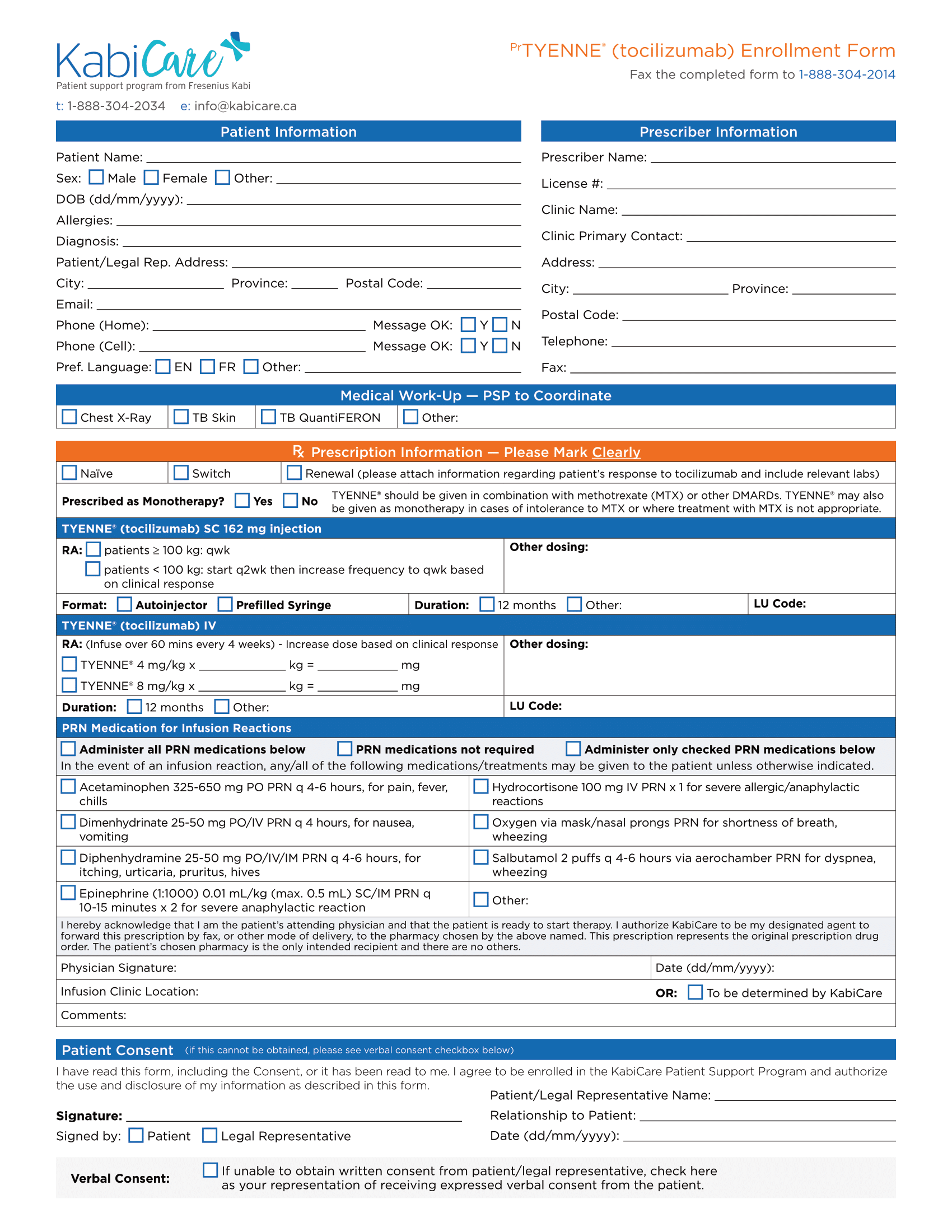 Tyenne (tocilizumab) RA PSP Enrollment Print