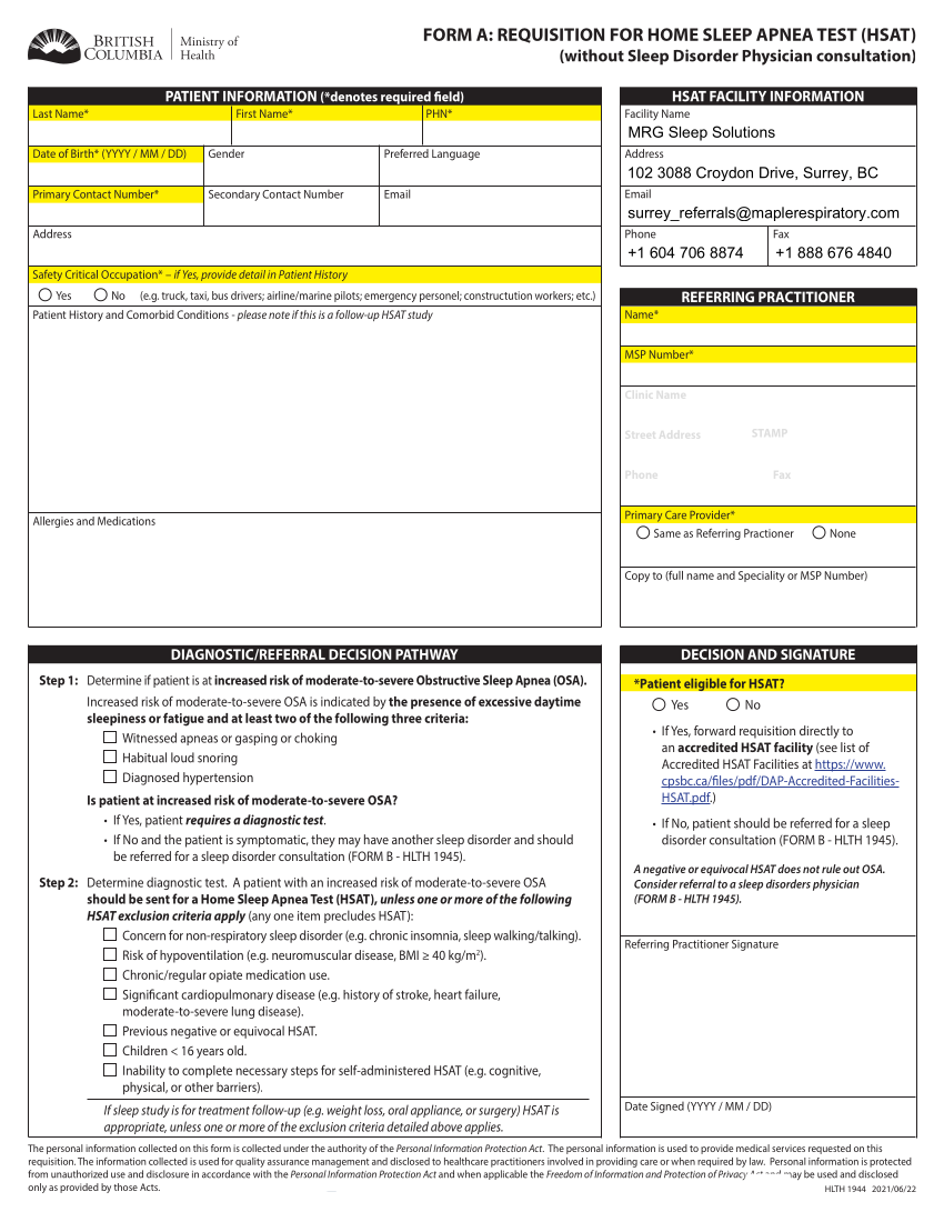 MRG Sleep Solutions - HSAT Form A Print
