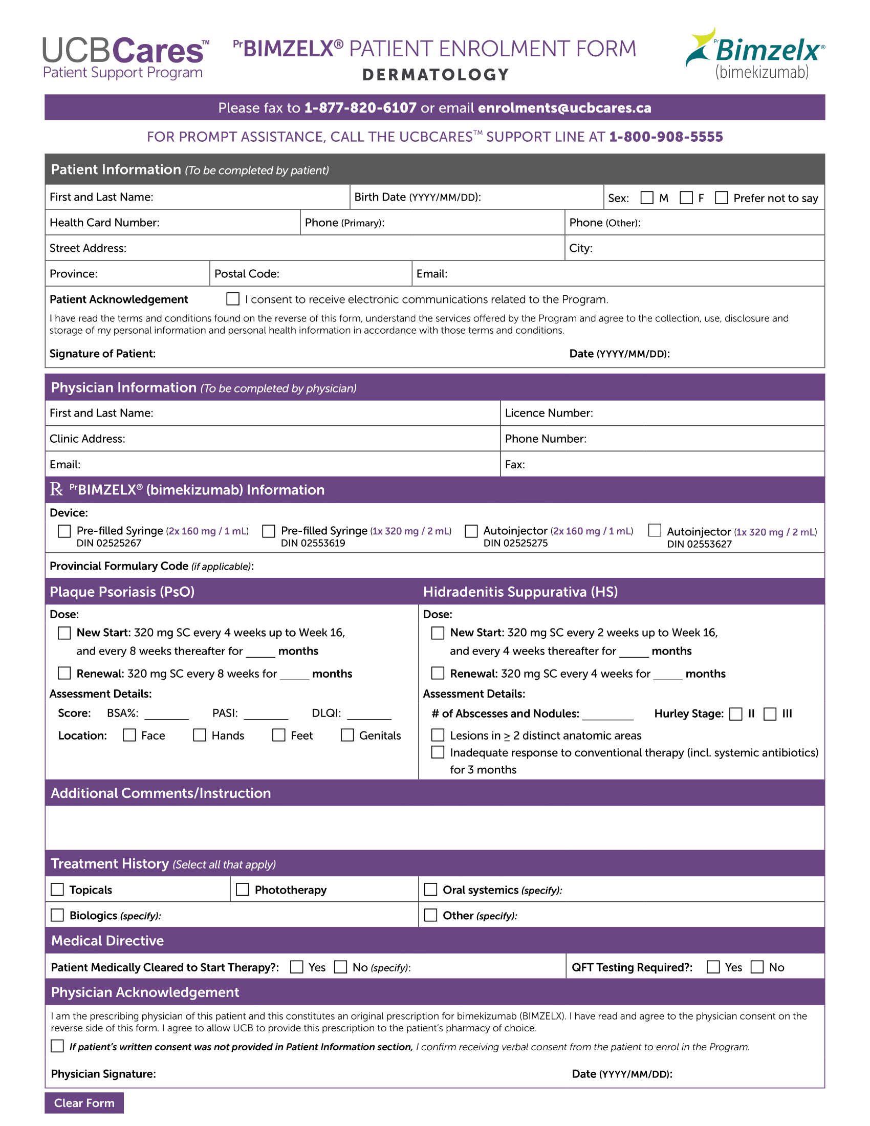 Bimzelx Bmikizumab Derm UCBCares PSP Enrollment Form 2025 Print