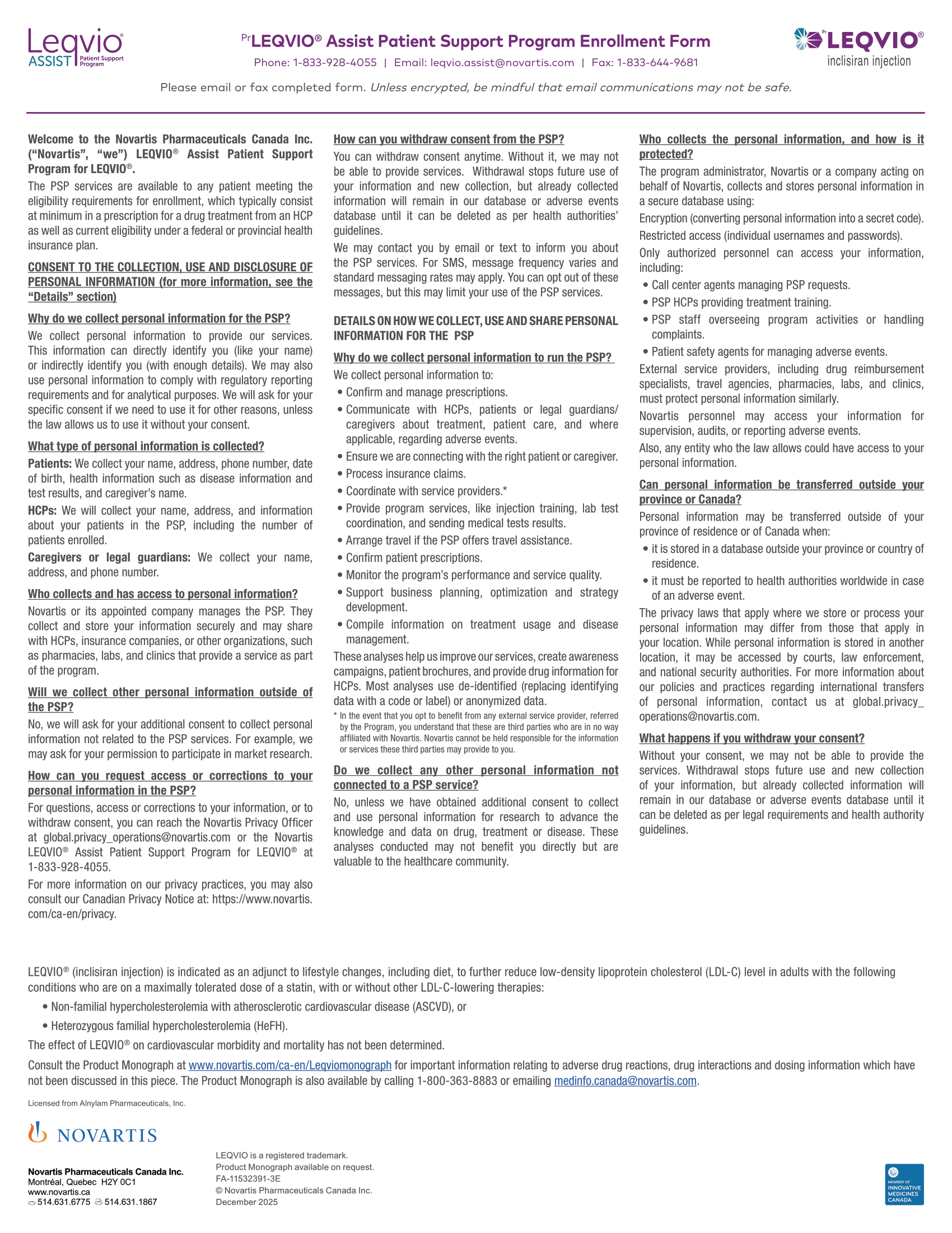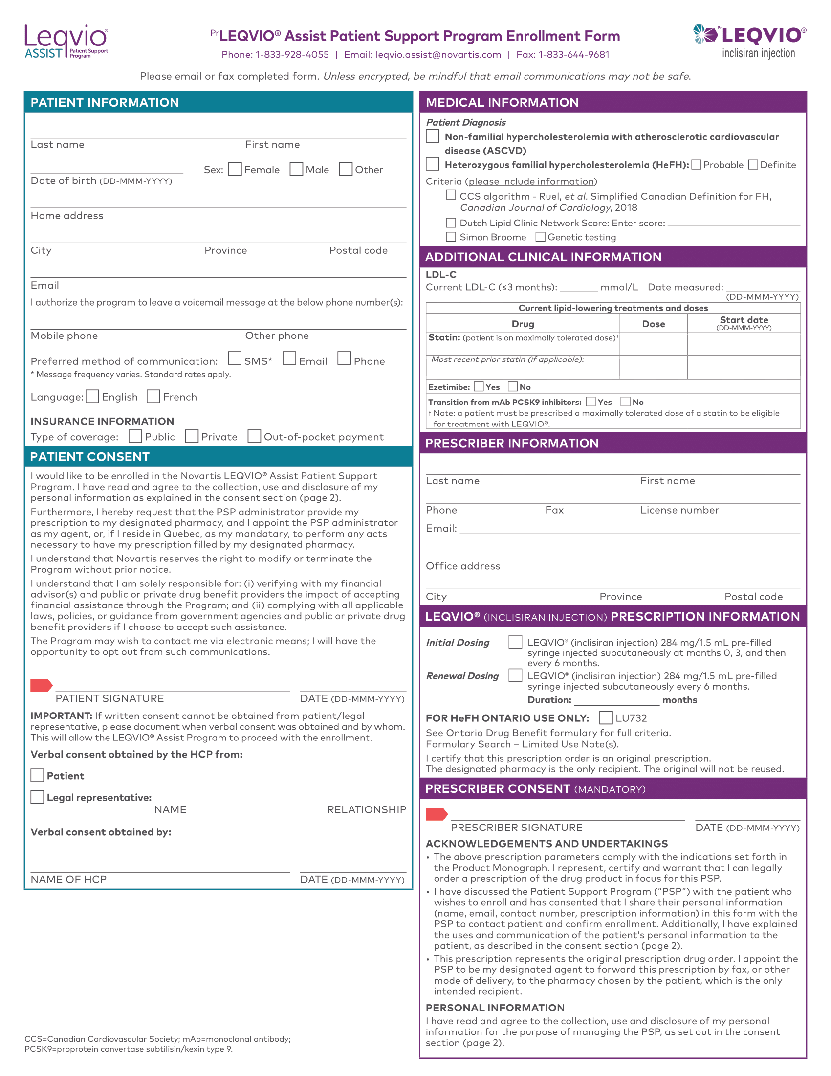 Leqvio Inclisiran Assist PSP Enrolment 2026 Print